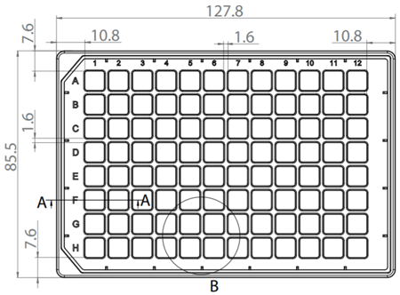 * 96個(gè)方孔,標(biāo)有標(biāo)準(zhǔn)編號(hào)(字母A-H和數(shù)字1-12)